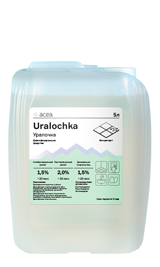 Уралочка обладает моющими и дезодорирующими свойствами, устраняет все запахи и дезинфицирует поверхности